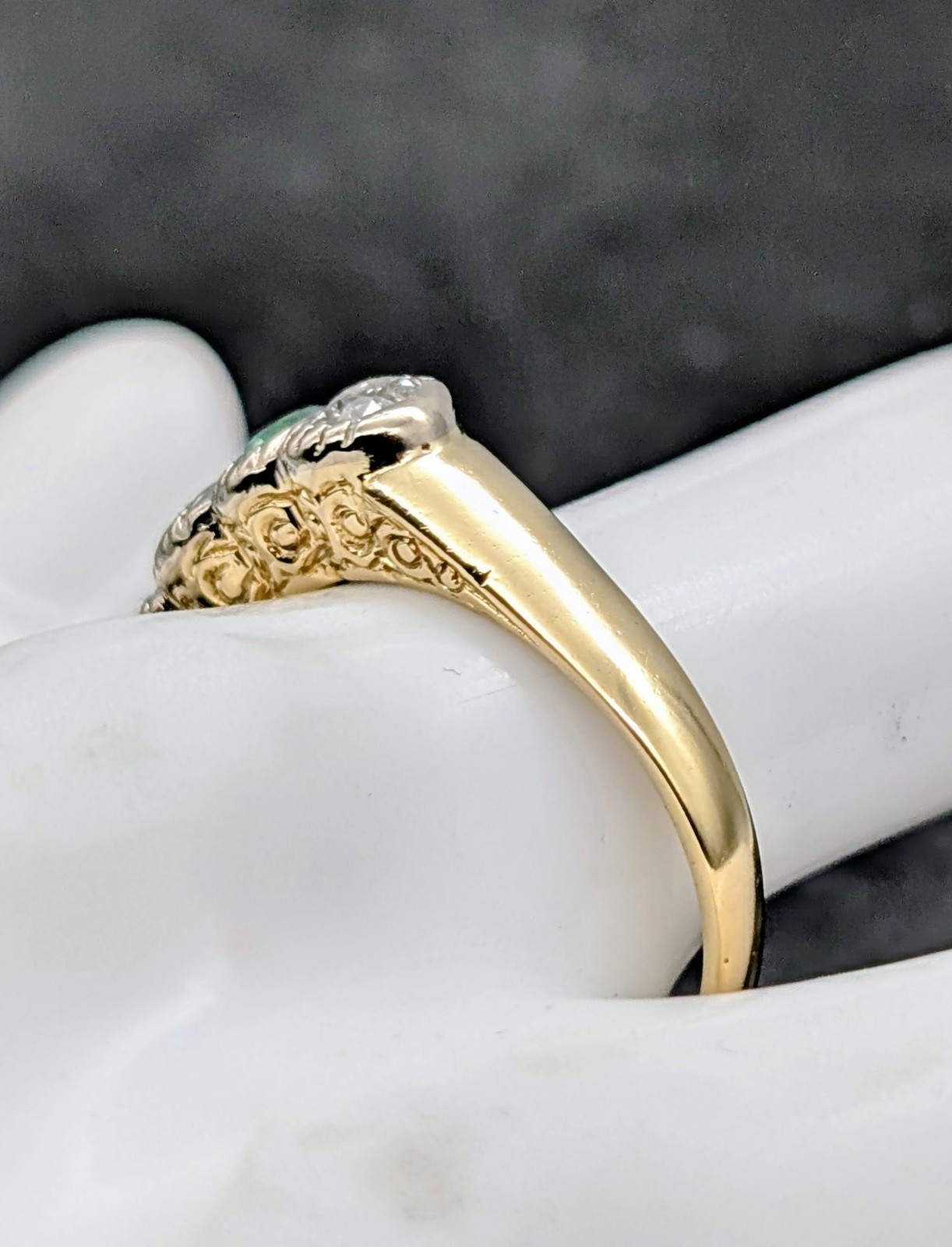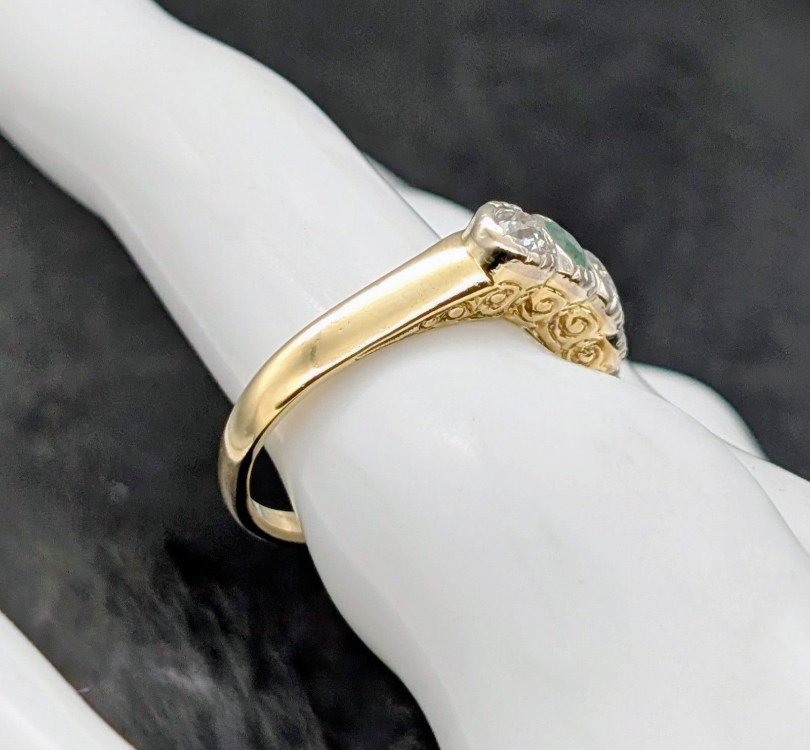 585/14K Gelbgold Smaragd Brillant 0,90ct Damenring – 7,40 g – [Größe 58] #1572