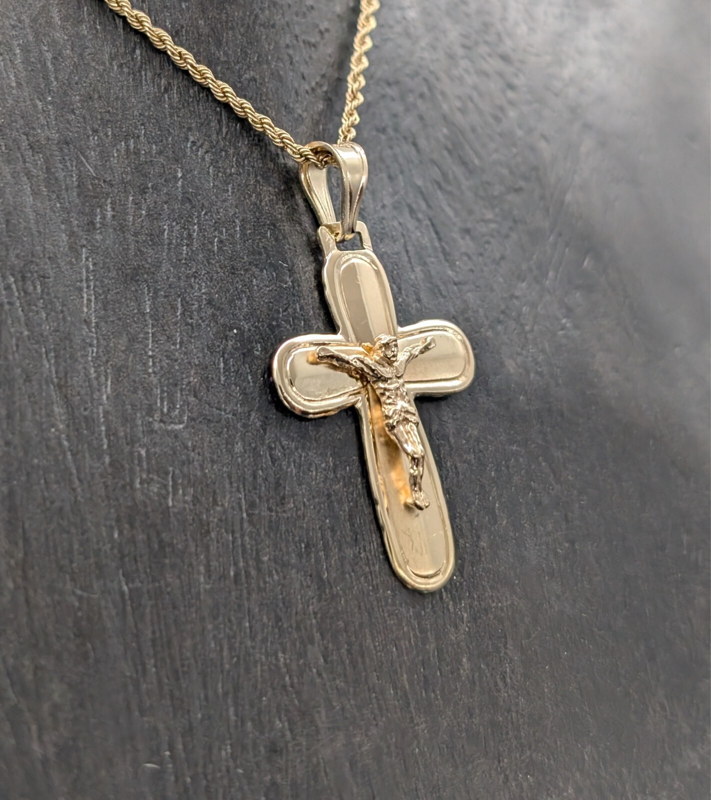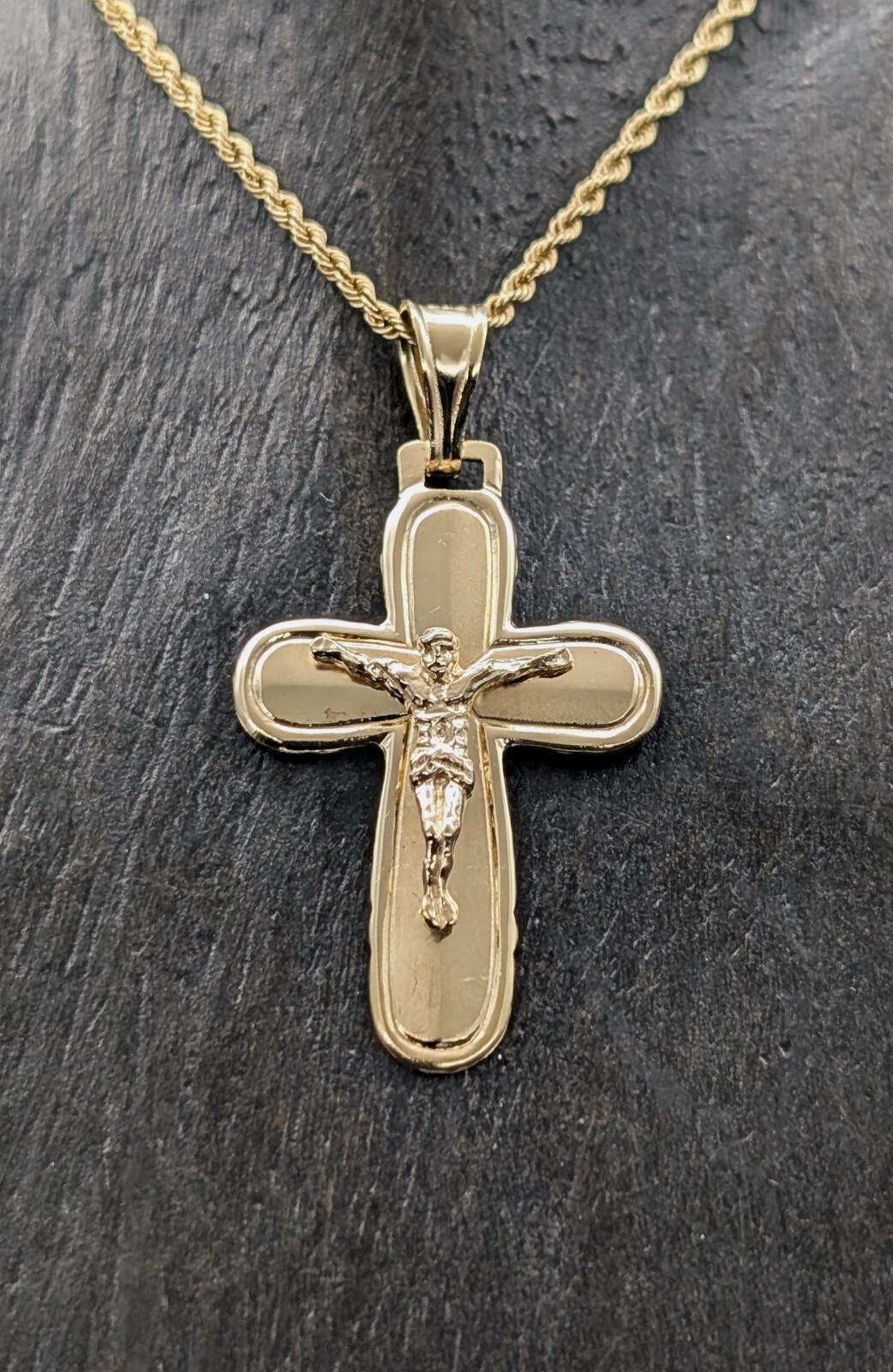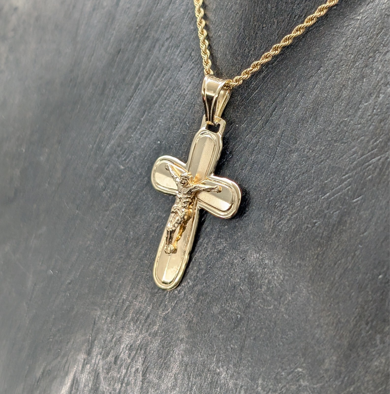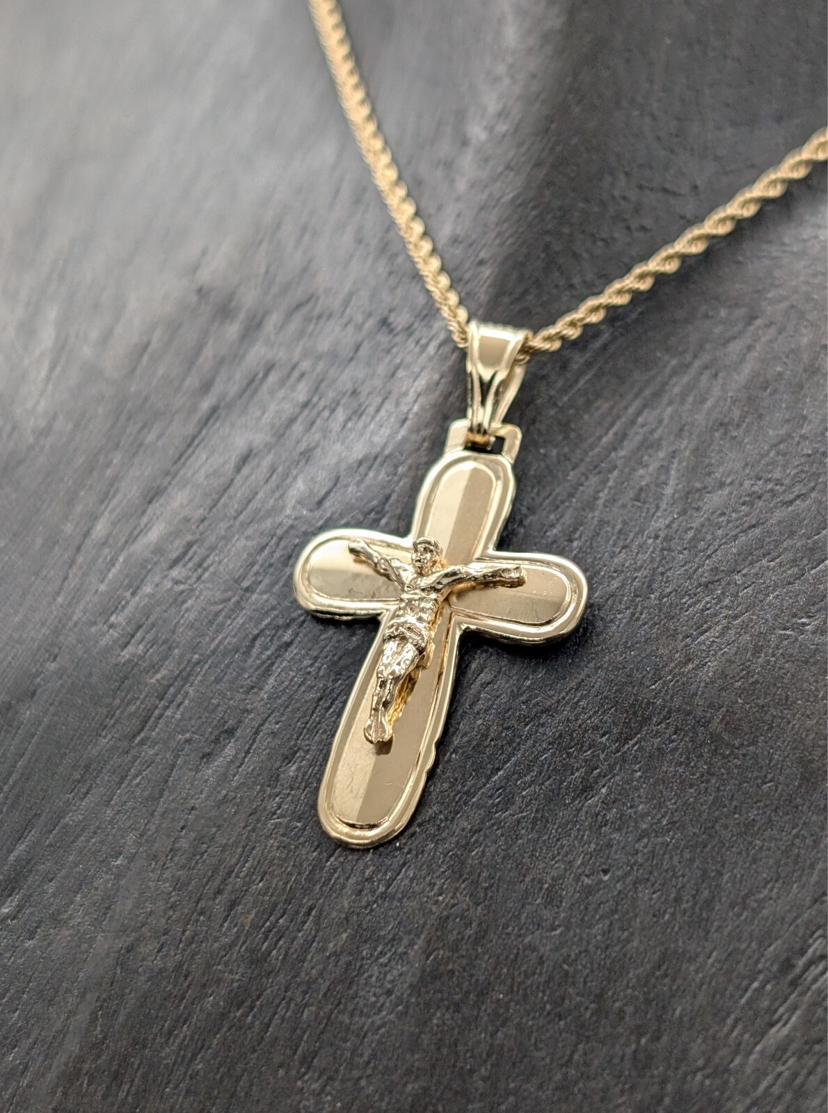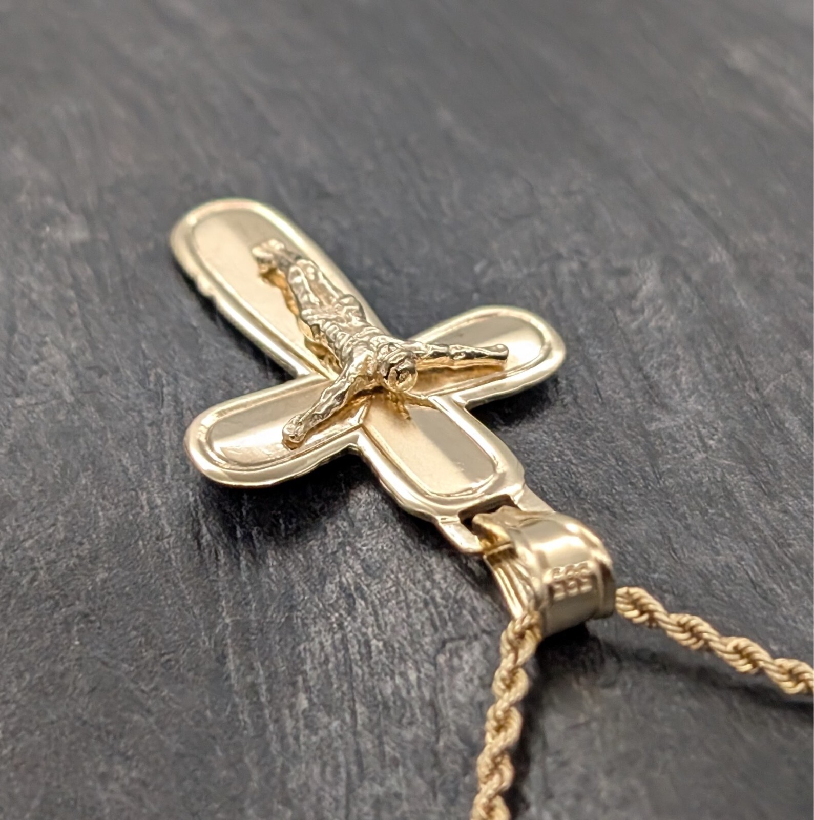 Anhänger Kreuz 585/14K Jesus Unisex 3,30Gr. Gelbgold für Halsketten #988