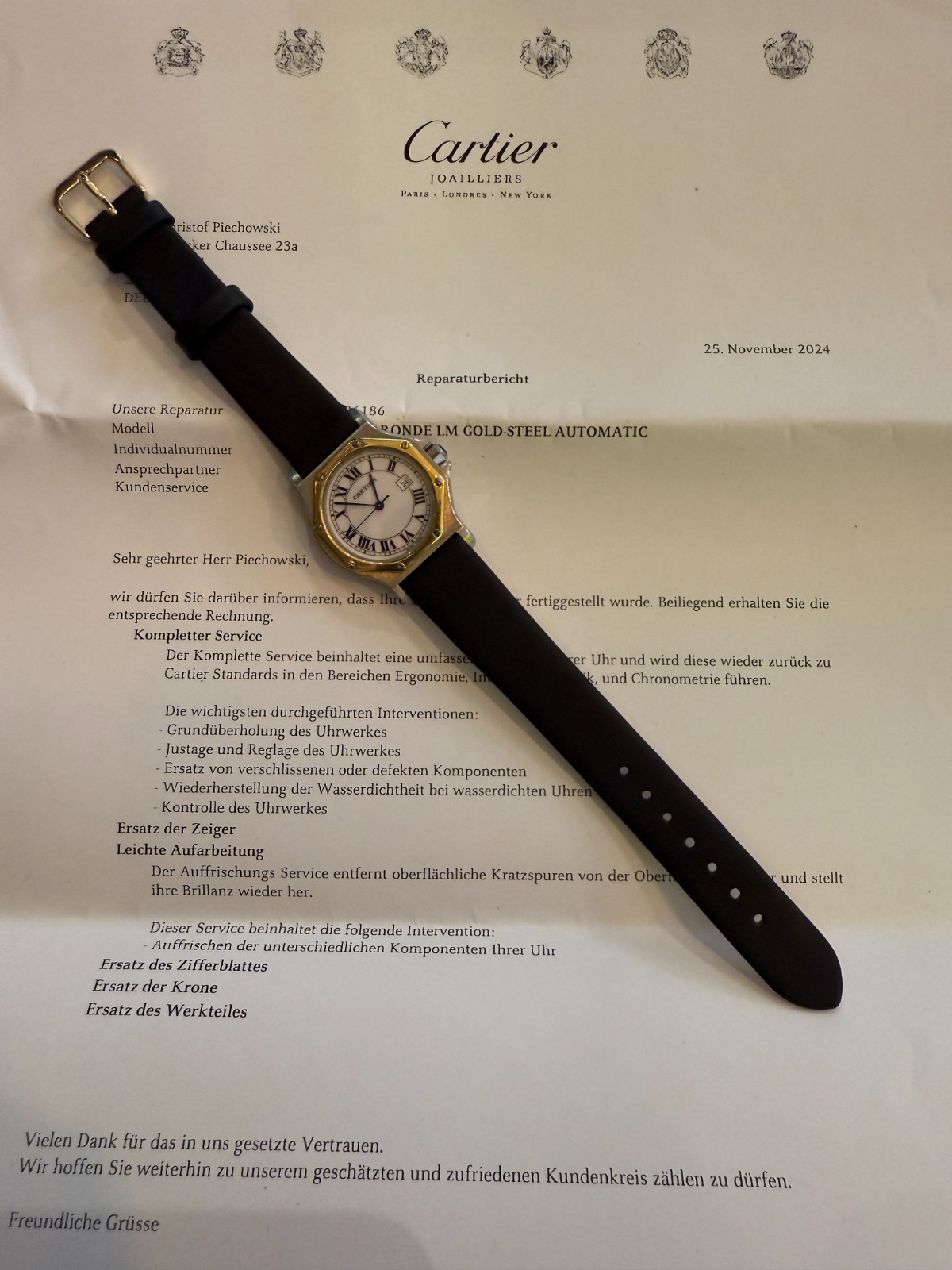 Cartier Service Nachweis von 10/2024 Grundüberholung