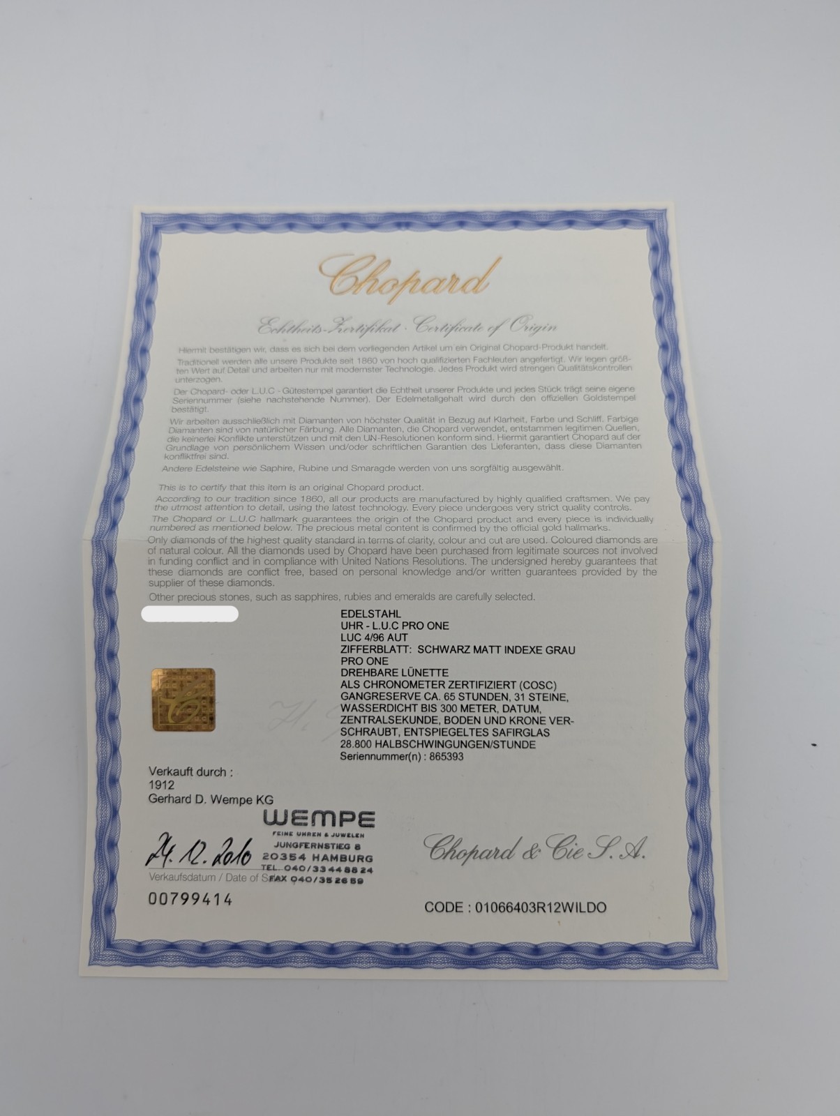 Chopard L.U.C Pro One 168912 – Automatik Chronometer Full Set Ø43 mm #3041
