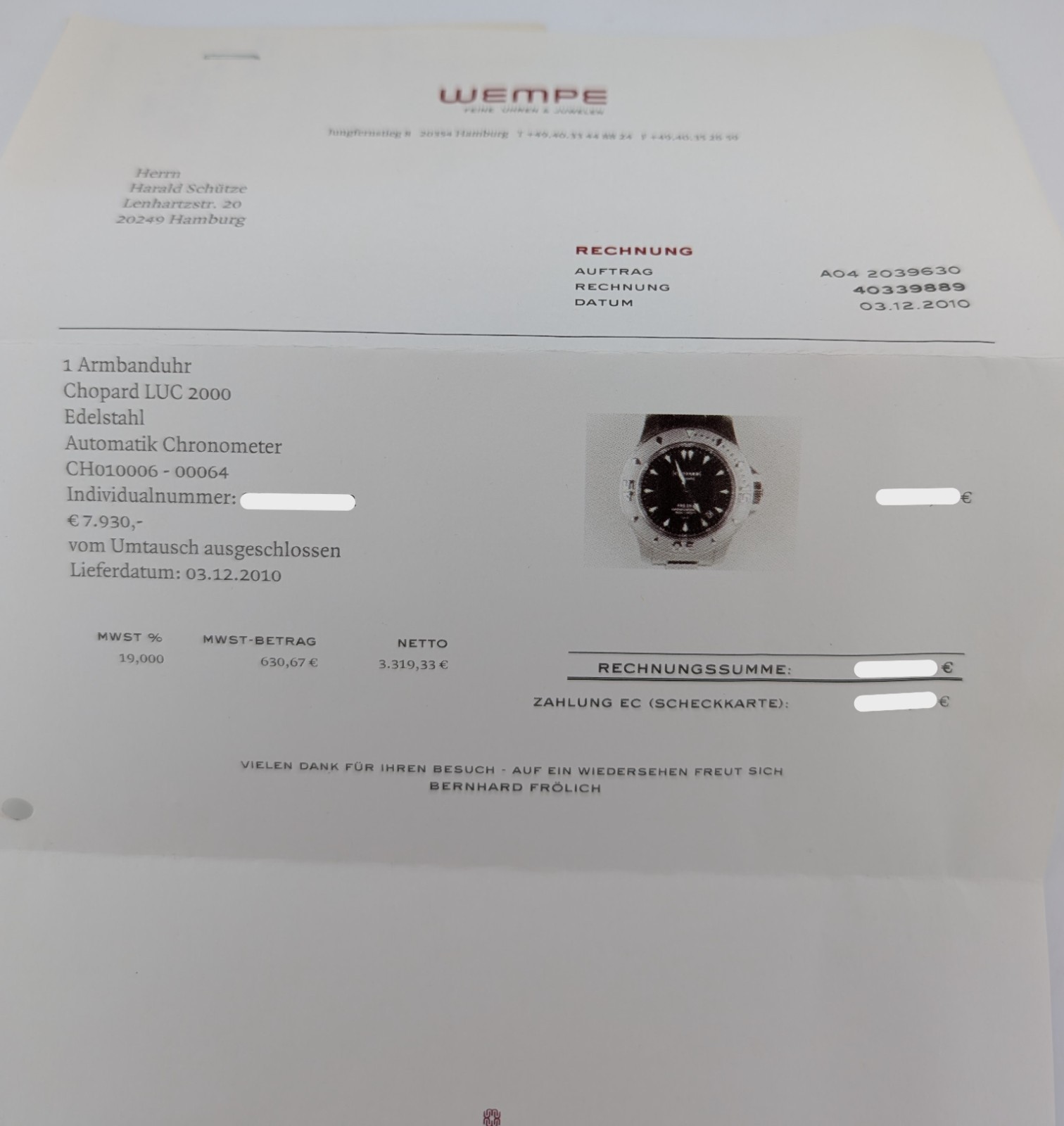 Rechnung von uns (Händlernachweis)