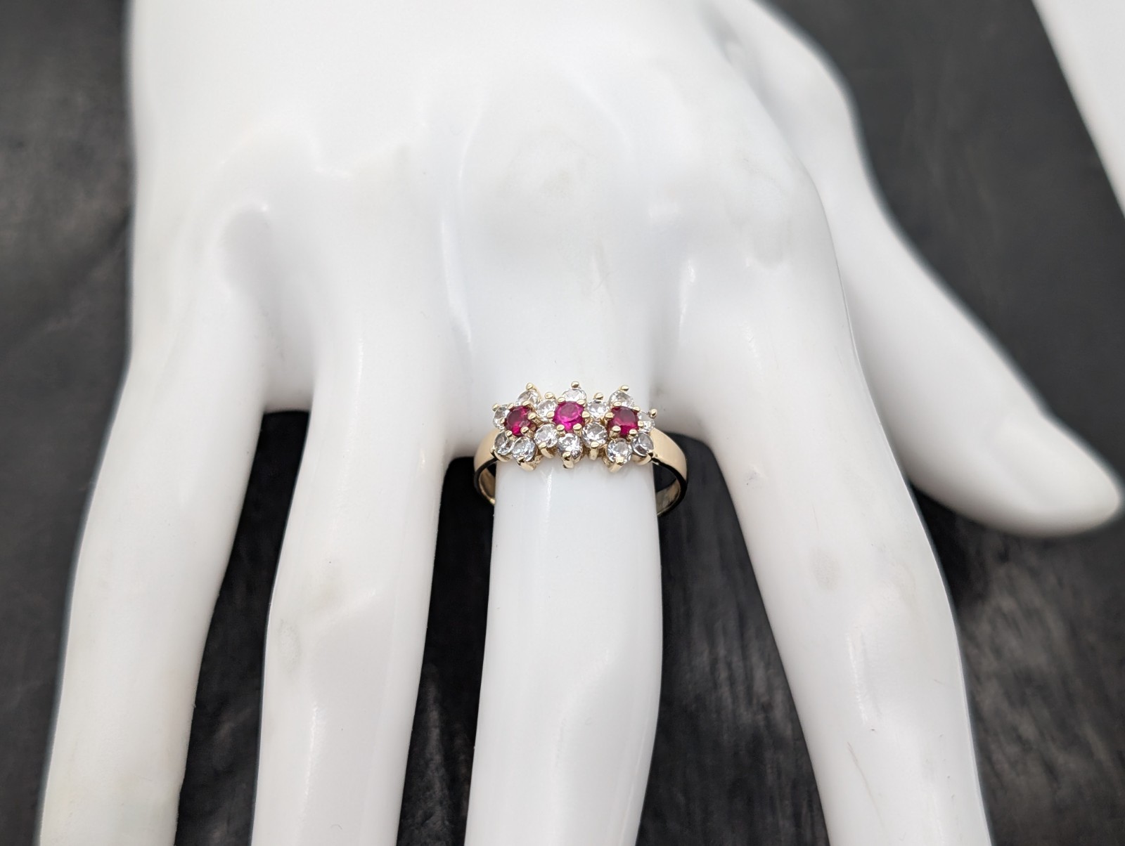 585/14K Gelbgold Damenring – 2,60 g – Größe 56 – Cocktailring Edelsteine #1547