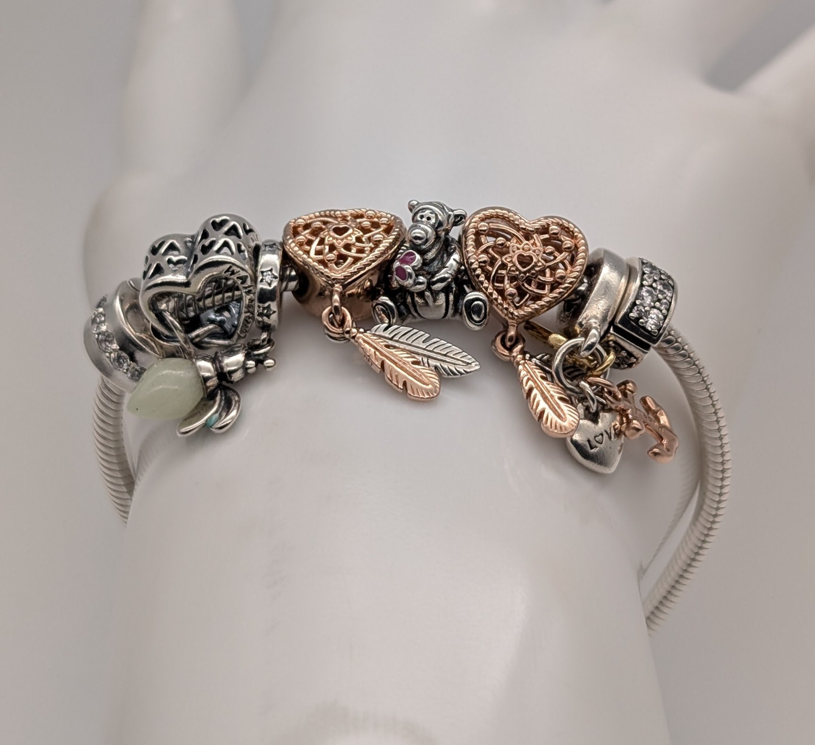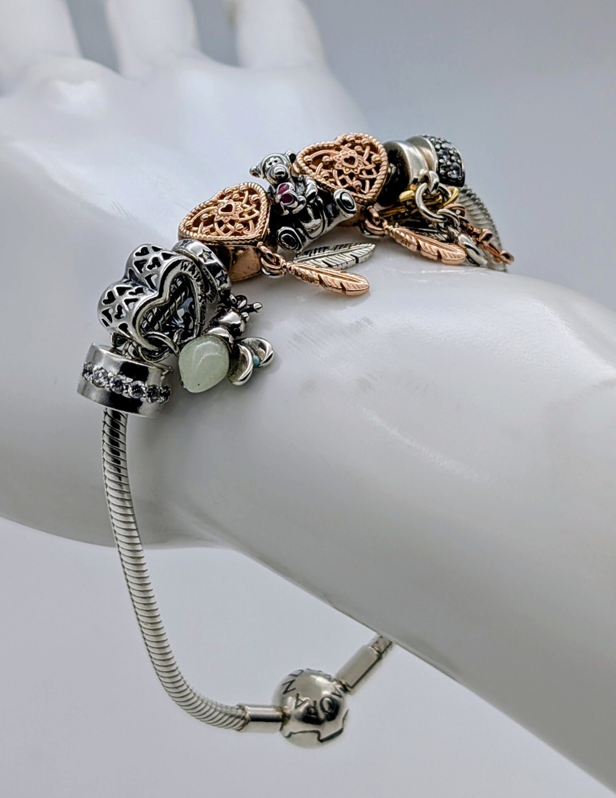 💍 Pandora Herz Bettelarmband 925 Sterling Silber – 36,50g – 22,00 cm – 8 Charms Bicolor